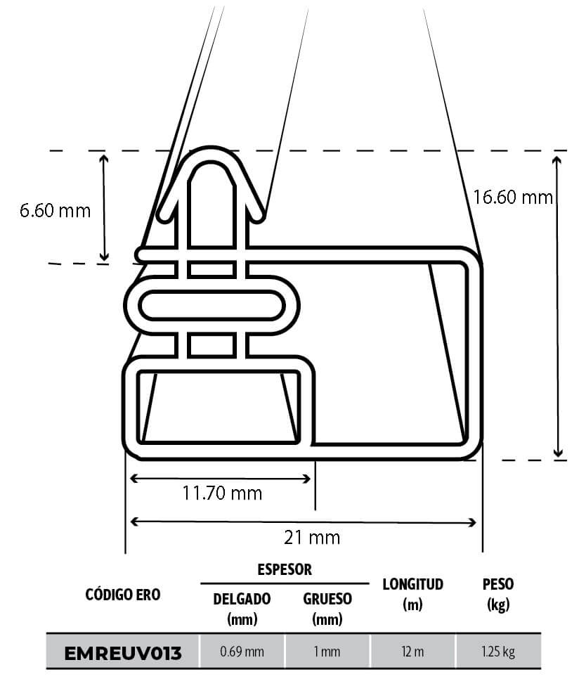 Empaque perfíl ala de vampiro 3, color negro, rollo 12m apróximados