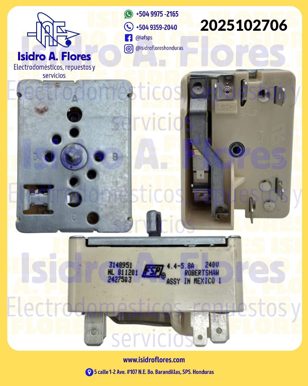 Switch interruptor infinito estufa Whirlpool original 4.4-5.8A 240V