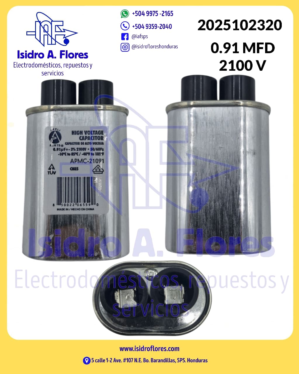 Capacitor para microondas 0.91 Mfd uF 2100V sirve varias marcas